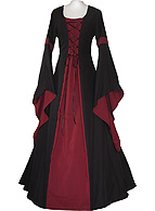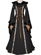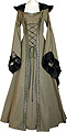 Gewand mit Kapuze, Schnürung und Doppel-Ärmeln.