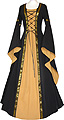 Edles Gewand mit Goldborte und weiten Ärmeln.